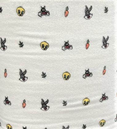 Αυτή η συλλογή φανελένιων σεντονιών και παπλωματοθηκών είναι εμπνευσμένη από τους αγαπημένους χαρακτήρες των Looney Tunes, όπως τον Bugs Bunny, τον Twetty και άλλους εμβληματικούς ήρωες. Με παιχνιδιάρικα σχέδια, ιδανικά για παιδιά, προσφέρει ζεστασιά και άνεση με το απαλό βαμβακερό ύφασμα φανέλας.