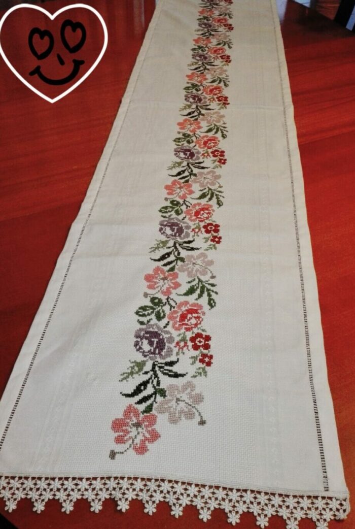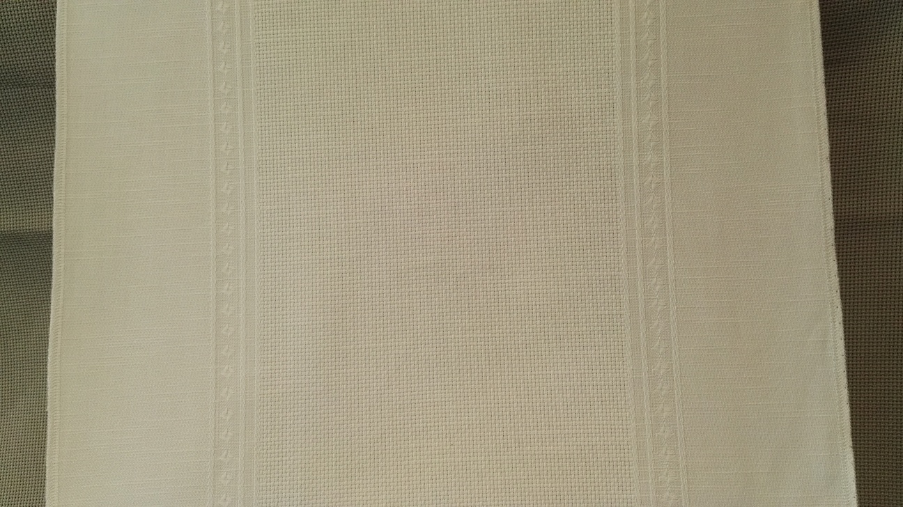 Μπορείτε να πάρετε όσα μέτρα επιθυμείτε διότι είναι σε ρολό. Κεντιέται στο κέντρο της τραβέρσας. Επίσης μπορείτε να φτιάξετε πετσετάκια ή μαξιλάρια π.χ 40 x 40cm