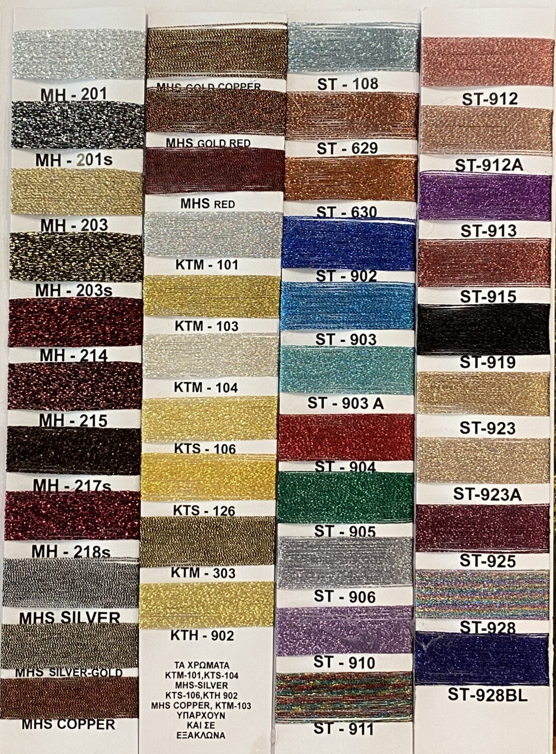 15.301 Μεταλλική κλωστή Κεντήματος Εργάνη, σε διάφορες αποχρώσεις.