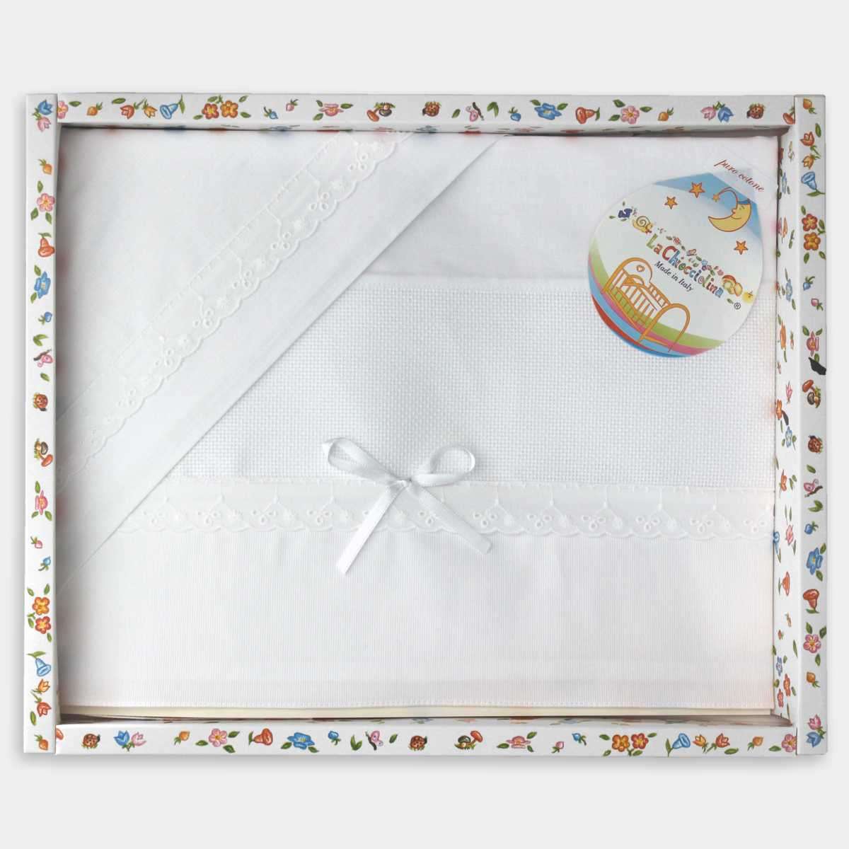 Σετ σεντόνια κούνιας με φάσα κεντήματος, ιδανικά για να δημιουργήσετε ένα μοναδικό και προσωποποιημένο σετ για το μωρό σας. Η ειδική φάσα επιτρέπει την προσθήκη κεντήματος για να δημιουργήσετε ένα μοναδικό σεντόνι με το δικό σας σχέδιο.