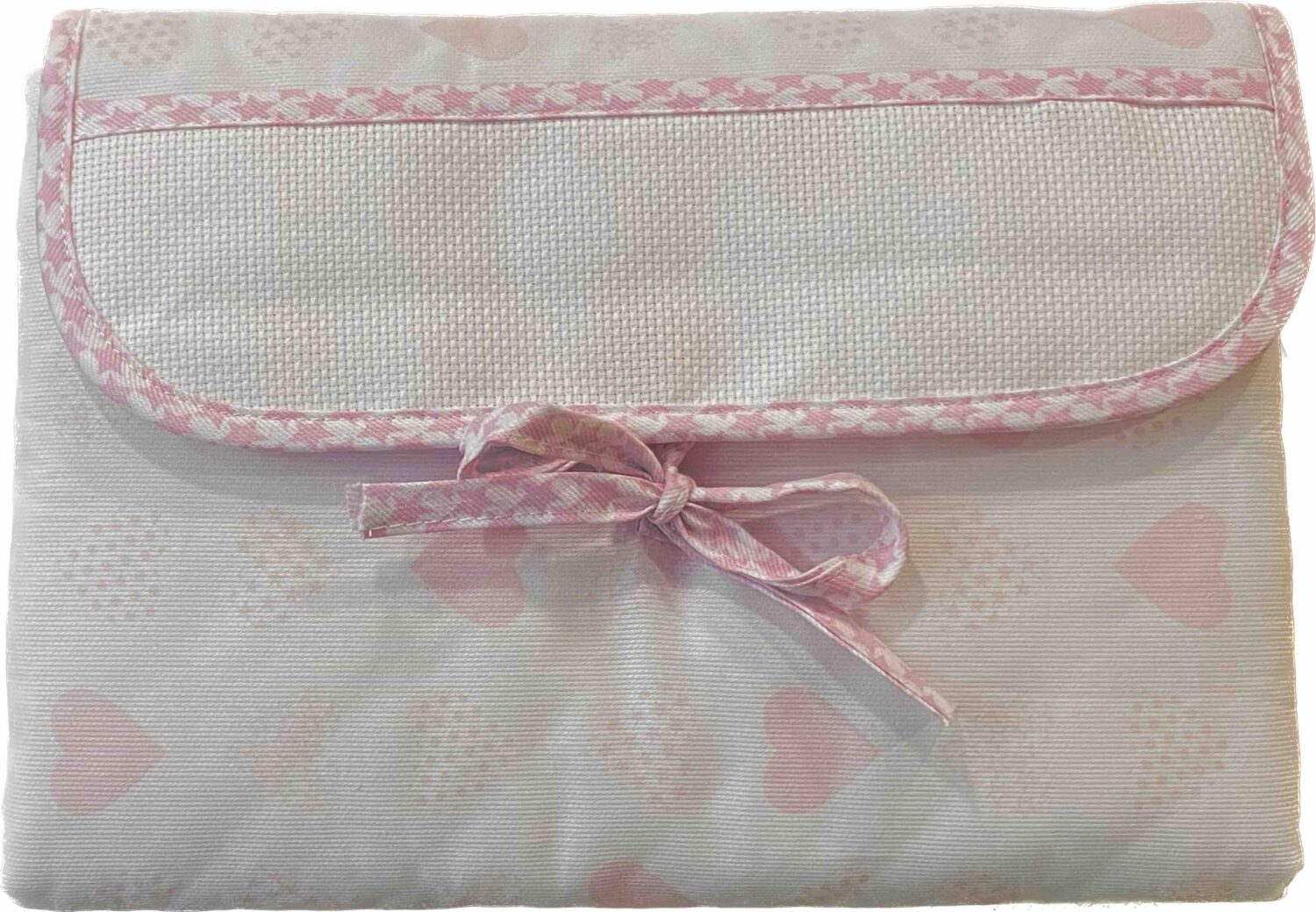 Αποκτήστε τη μίνι αλλαξιέρα με φάσα κεντήματος και κάντε τις αλλαγές της πάνας του μωρού σας πιο εύκολες και στυλάτες από ποτέ, προσθέτοντας το προσωπικό σας άγγιγμα με το κέντημα στη φάσα! Ο κομψός και πρακτικός σχεδιασμός της την καθιστούν ιδανική λύση για γρήγορες και άνετες αλλαγές της πάνας του μωρού σας, οπουδήποτε κι αν βρίσκεστε. Κατασκευασμένη από υψηλής ποιότητας ύφασμα, απαλό και ανθεκτικό. Η αλλαξιέρα διαθέτει μαλακή και άνετη επένδυση, εύκολη στον καθαρισμό. Το όμορφο σχέδιο με ροζ καρδιές προσθέτουν μία γλυκιά όψη. Η φάσα κεντήματος μπορεί να κεντηθεί, προσφέροντας τη δυνατότητα για προσωπικές πινελιές και μοναδικότητα.