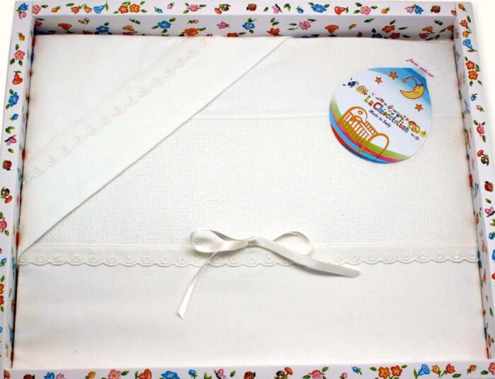 Σετ βαμβακερό σεντόνι κούνιας και μαξιλαροθήκη με ενσωματωμένη φάσα τύπου aida που μπορεί να κεντηθεί.