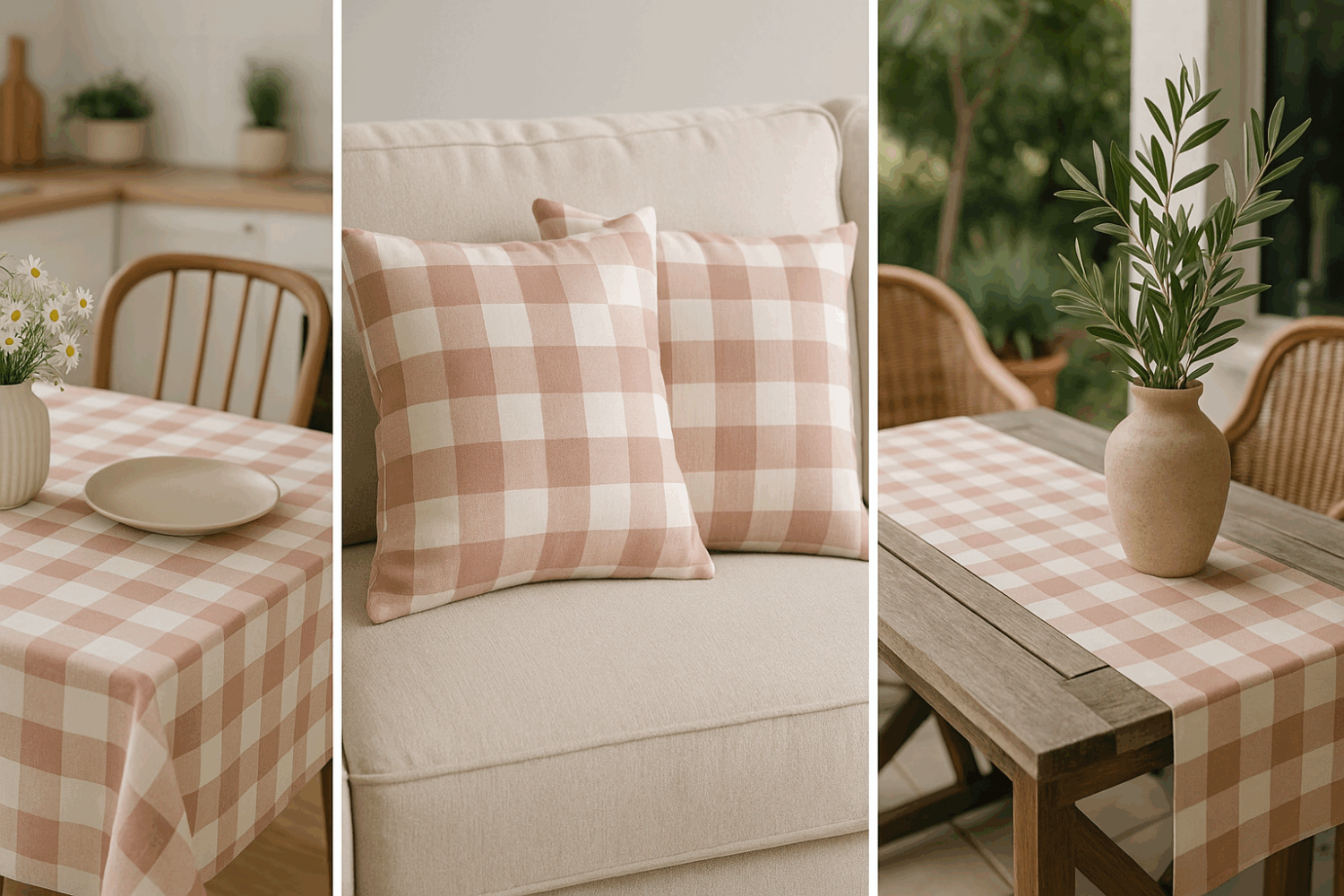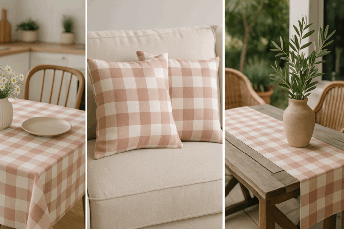Kομψό καρό ύφασμα Panama σε αποχρώσεις ροζ και λευκού, ταιριάζει σε κάθε είδος διακόσμηση.