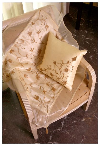 6031 Κέντημα με πέρλες πάνω σε κρεμ οργάντζα.