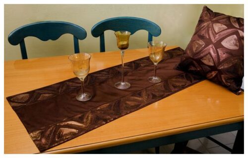 Τραβέρσα λευκή με χρυσή ρίγα και με λασέ δαντέλα.
