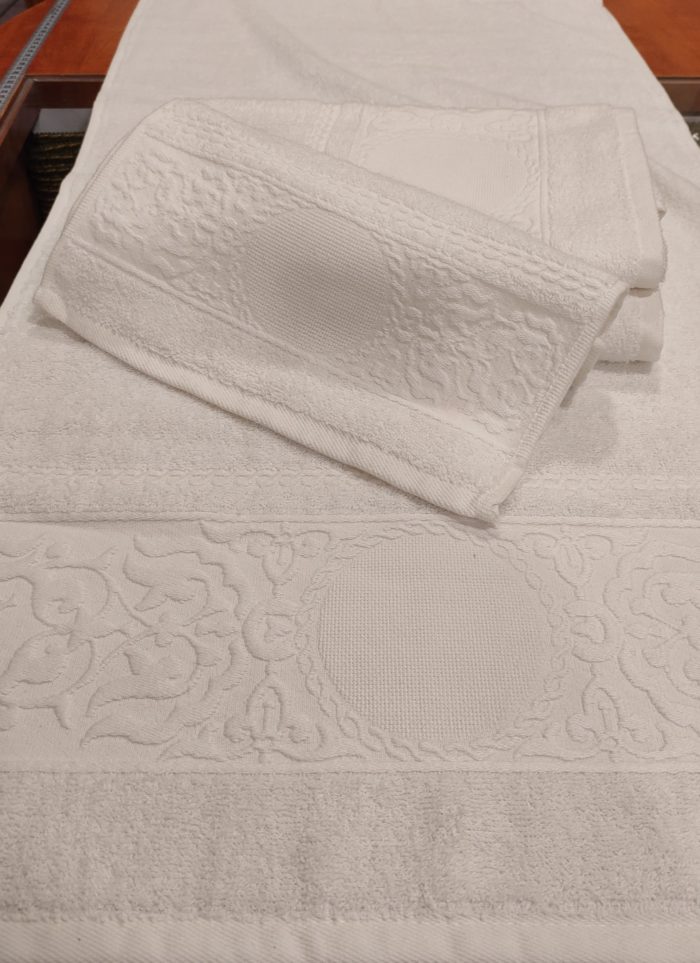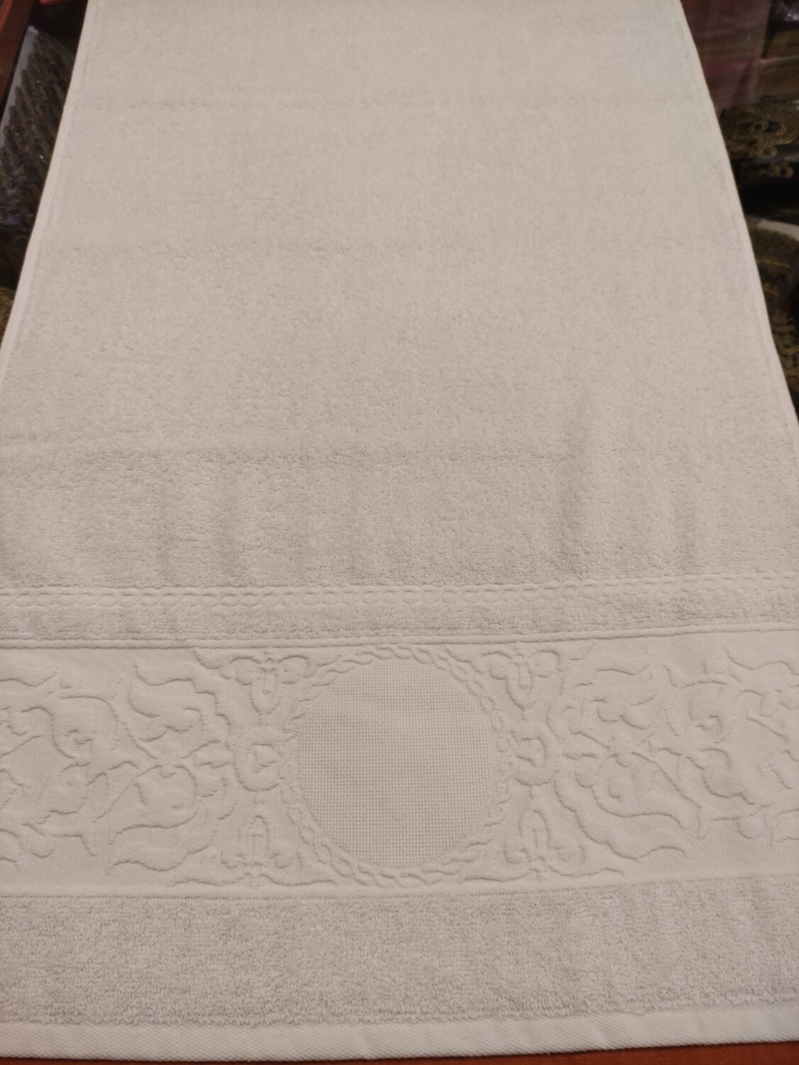 Λευκή βαμβακερή πετσέτα με εταμίν για κέντημα και ανάγλυφο σχέδιο. Ιδανική για μονογράμματα & διακριτικά σχέδια. Άριστη ποιότητα για κάθε δημιουργία.