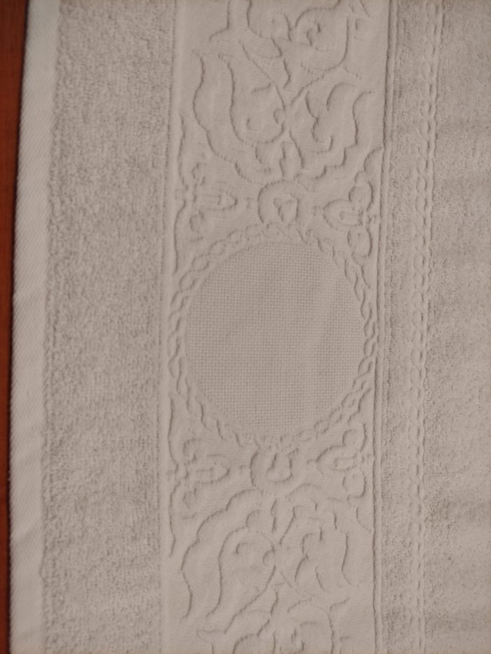7C. Λευκή πετσέτα με ανάγλυφο σχέδιο και εταμίν για κέντημα