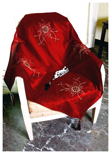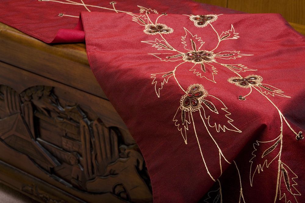 8046 Χρυσό κέντημα σε μπορντώ φόντο με κόκκινες πέτρες