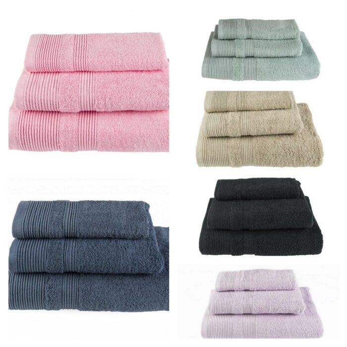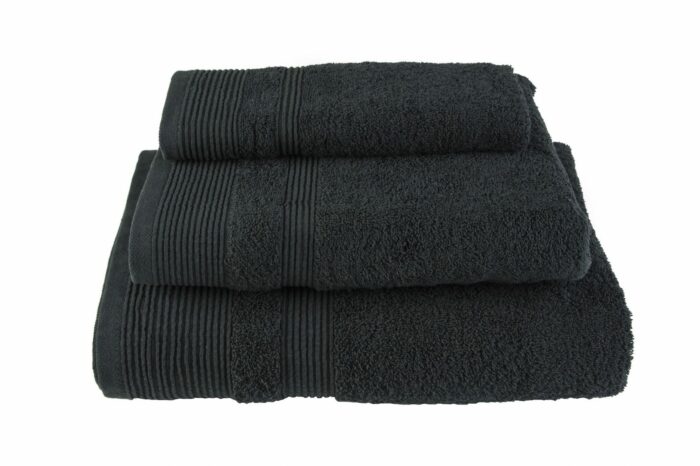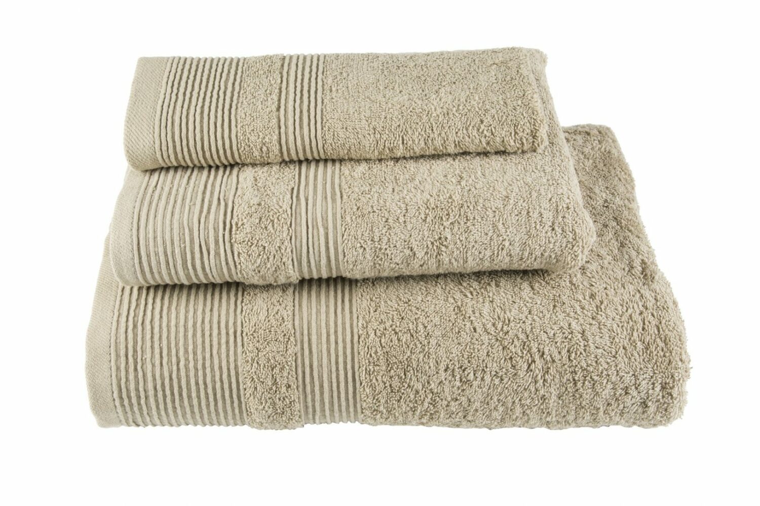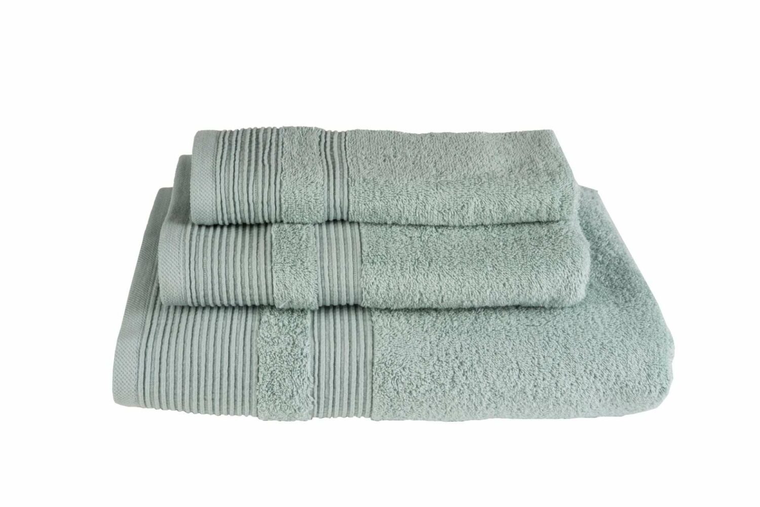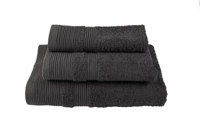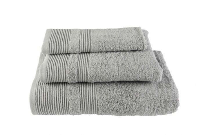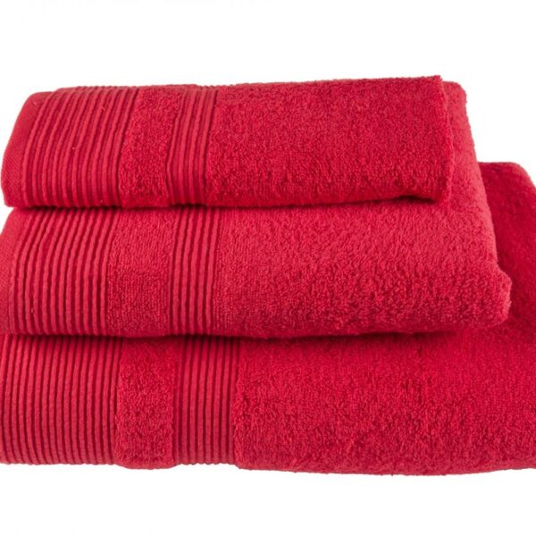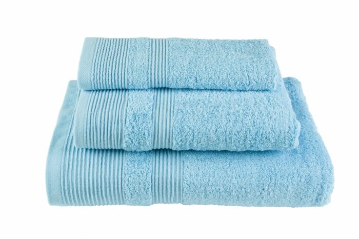 Πετσέτα μονόχρωμη με ριγέ μπορντούρα.