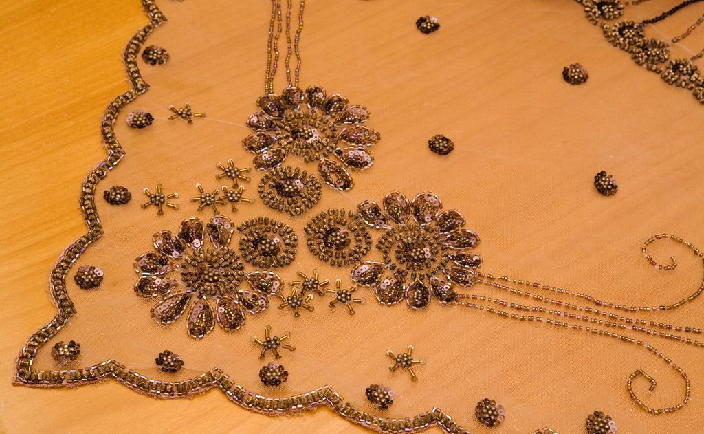 9148 Καφέ κέντημα χειροποίητο με παγιέτες, πέρλες και χάντρες (σετ).