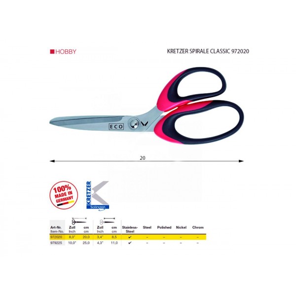 Ψαλίδι Eco Hobby 972020 20cm Kretzer Solingen Γερμανίας.