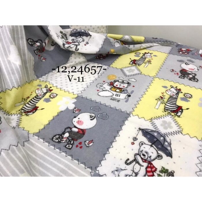 Απαλό ύφασμα ιδανικό για παιδικά δωμάτια που προσφέρει ζεστασιά και άνεση. Το χαριτωμένο του σχέδιο δημιουργεί ένα ονειρικό περιβάλλον. Κατάλληλο για σεντόνια, πάνες, μαξιλαροθήκες, πιτζάμες ή ακόμα και ρούχα για νεογέννητα.