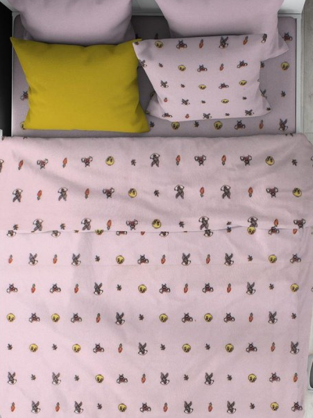 Αυτή η συλλογή φανελένιων σεντονιών και παπλωματοθηκών είναι εμπνευσμένη από τους αγαπημένους χαρακτήρες των Looney Tunes, όπως τον Bugs Bunny, τον Twetty και άλλους εμβληματικούς ήρωες. Με παιχνιδιάρικα σχέδια, ιδανικά για παιδιά, προσφέρει ζεστασιά και άνεση με το απαλό βαμβακερό ύφασμα φανέλας.