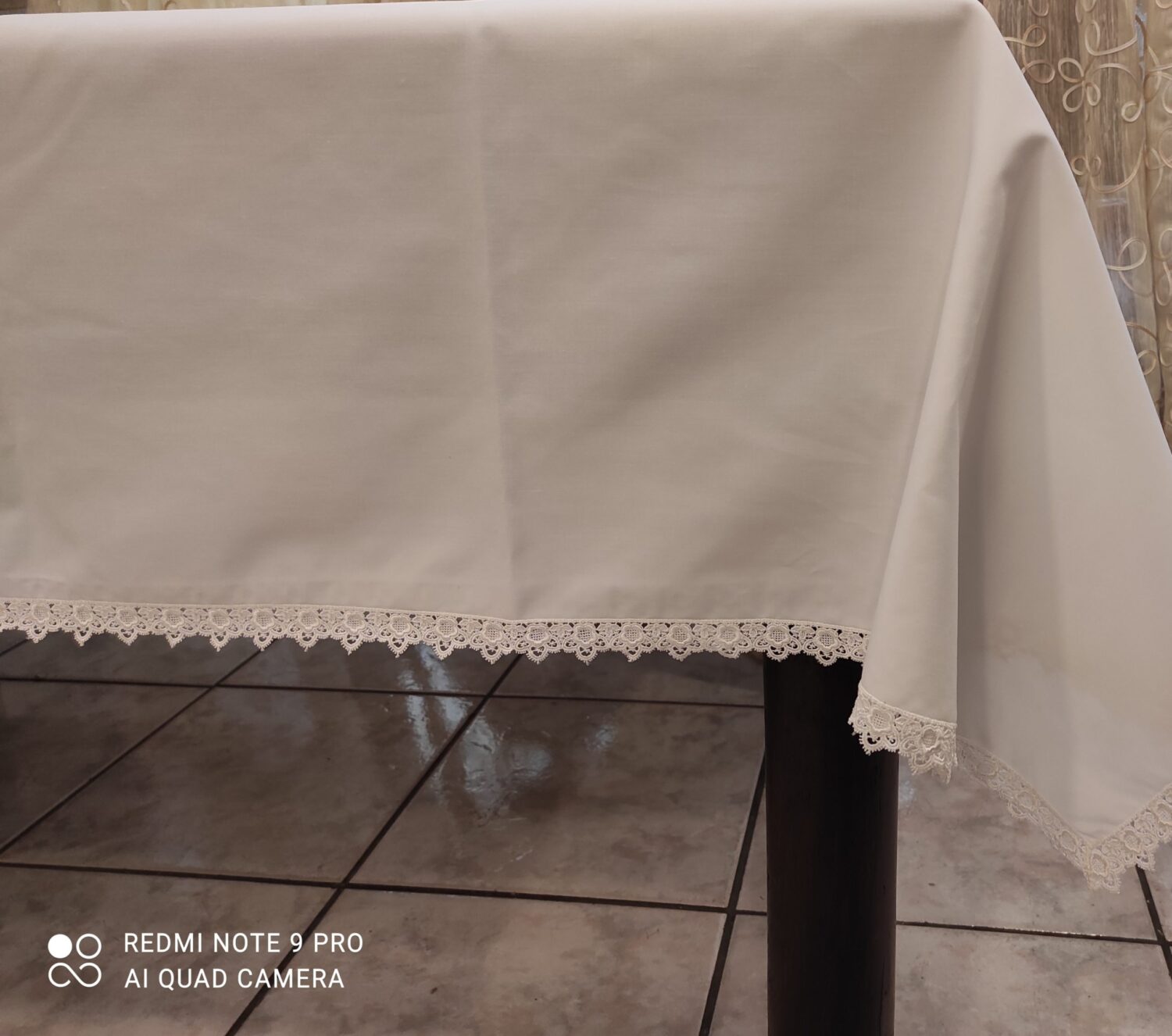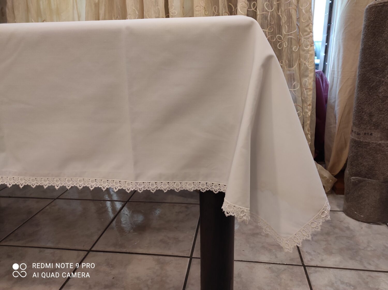 Τραπεζομάντηλο λευκό βαμβακερό με δαντέλα.