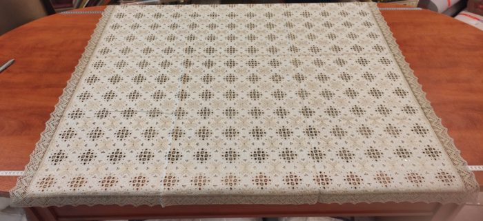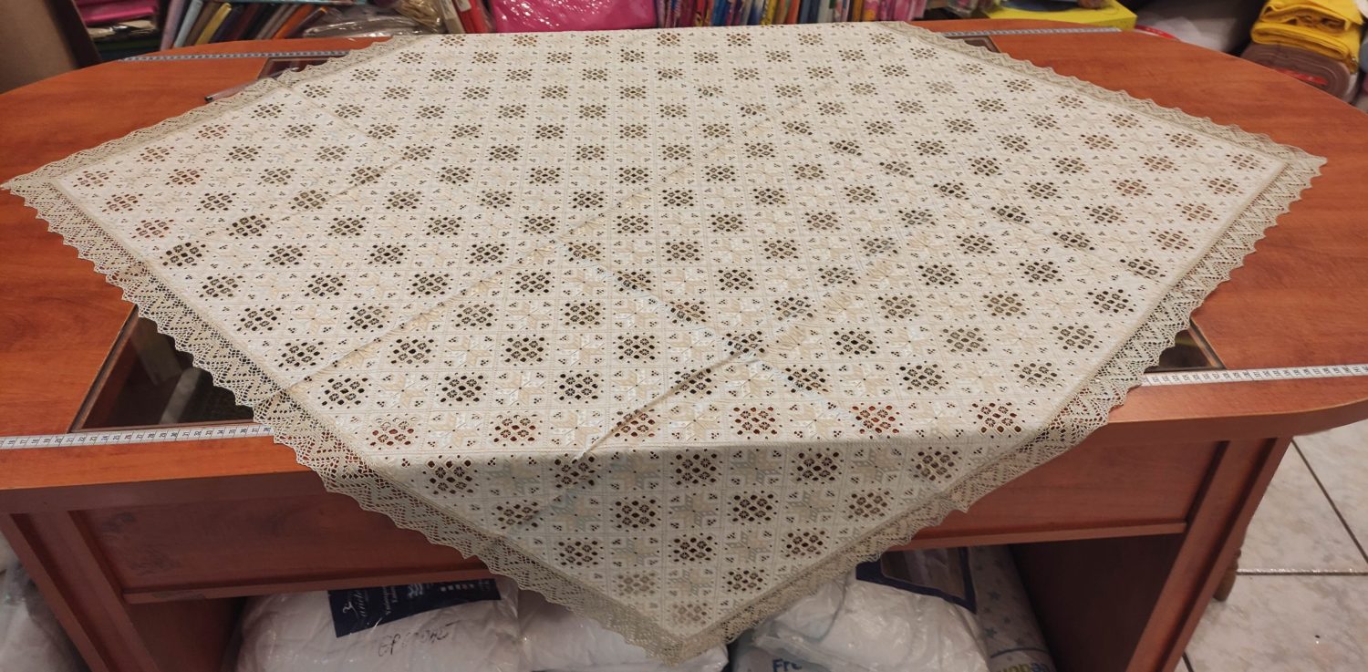 2020 Τραπεζομάντηλο κοφτό με μπεζ κέντημα και αζούρ.
