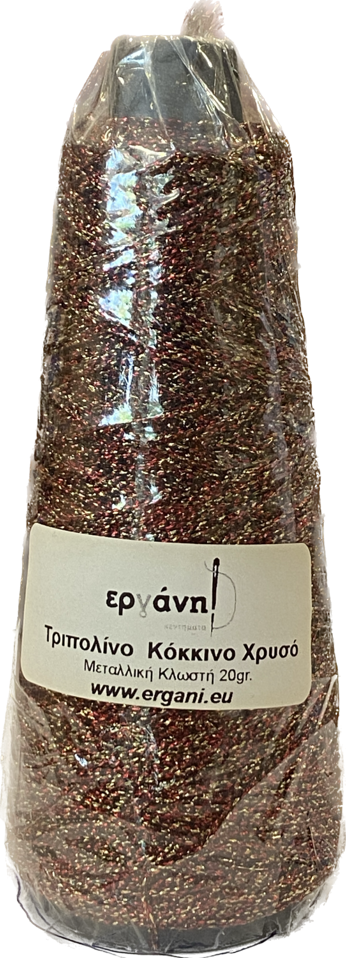 Το νήμα Τριπολίνο-Αλυσιδάκι είναι μια εξαιρετική μεταλλική κλωστή που προσφέρει μοναδική λάμψη και κομψότητα στα έργα σας. Με την ανθεκτικότητα και την ευκολία στη χρήση του, είναι ιδανικό για κέντημα, πλέξιμο, κατασκευή κοσμημάτων και διακοσμητικών αντικειμένων.